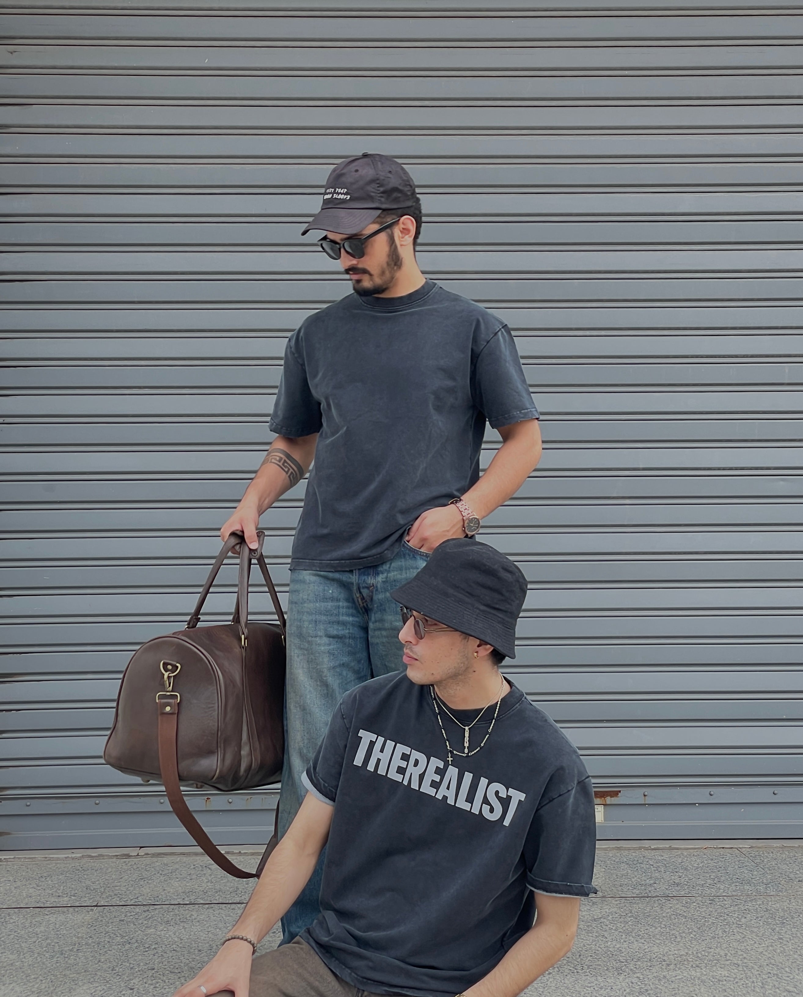 THEREALIST Storm Fade Boxy Tee – Grey Acid-Wash